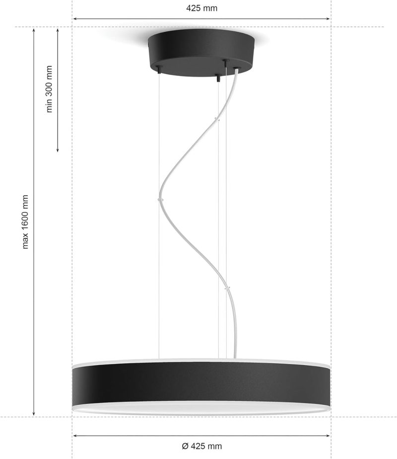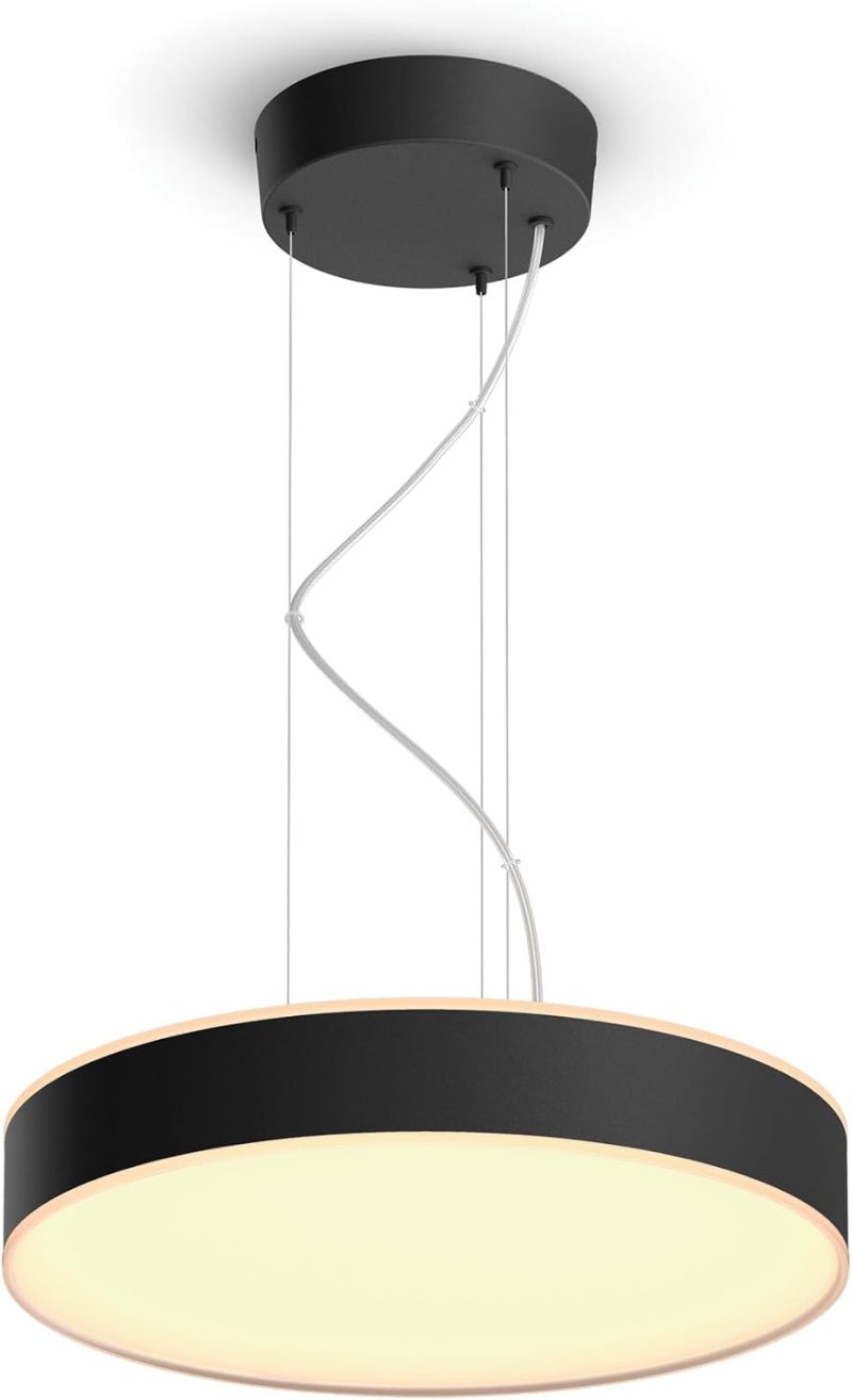 Veldu á milli þúsunda lit- og birtubrigða með Hue Enrave hangandi loftljósinu. Gert til að lýsa upp svæði eins og yfir eldhús eða borðstofuborði. Kastar einnig fallegri birtu upp í loftið á sama tíma og öflug lýsing virkar niður á við.